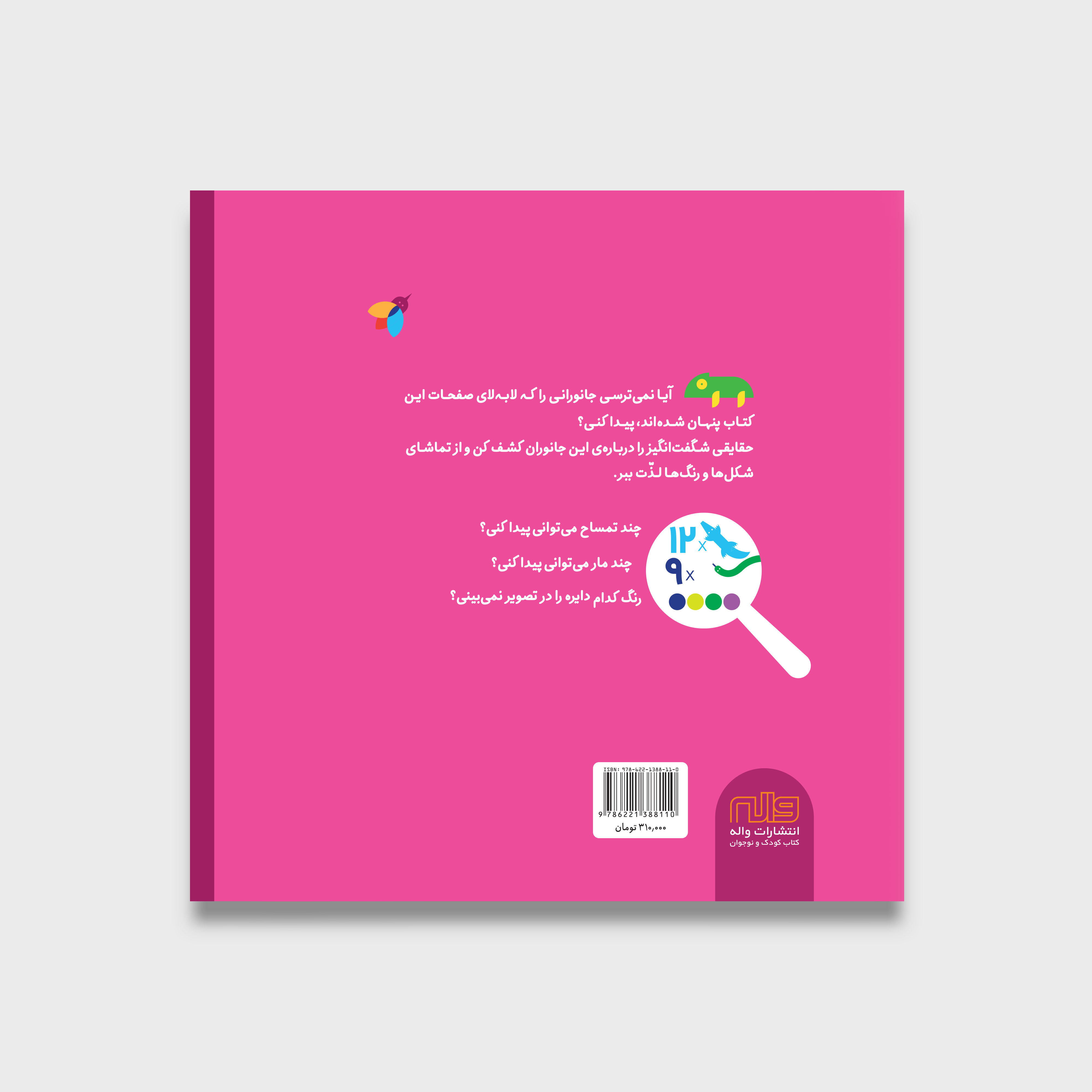 آیا نمیترسی جانورانی را که لابهلای صفحات این کتاب پنهان شدهاند، پیدا کنی؟ حقایقی شگفتانگیز را دربارهی این جانوران کشف کن و از تماشای شکلها و رنگها لذّت ببر. چند تمساح میتوانی پیدا کنی؟ چند مار میتوانی پیدا کنی؟